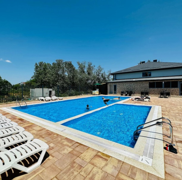 Два подогреваемых открытых бассейна с пресной водой (взрослый и детский). Работают с 30 апреля по 15 октября с 10:00 до 22:00. Аквааэробика и водные развлечения.