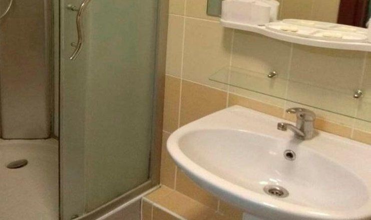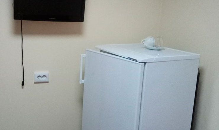 В номере: кровать односпальная, прикроватная тумбочка, шкаф, телевизор, холодильник, чайный набор посуды