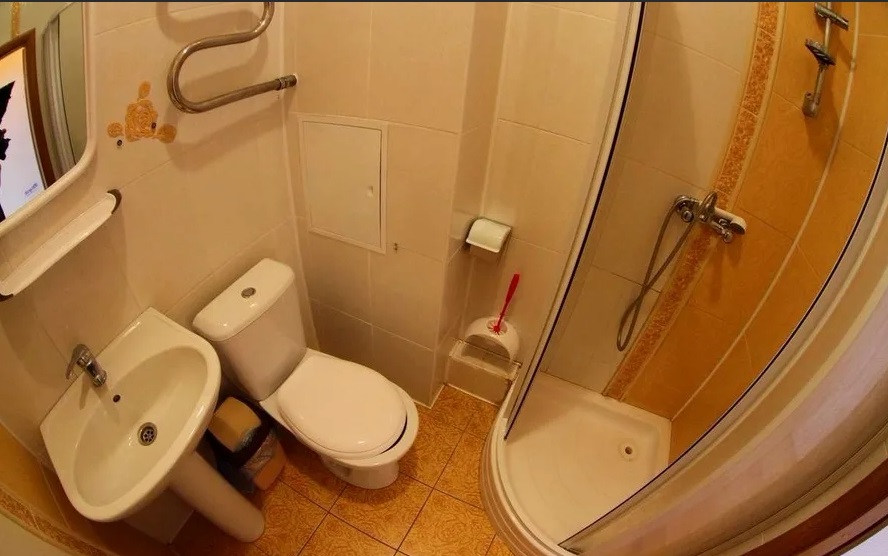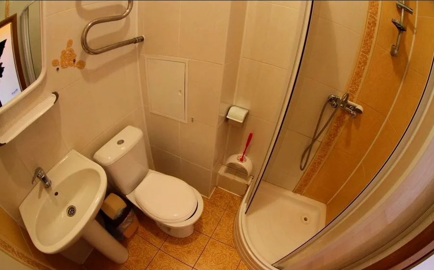 Санузел: душ, раковина, унитаз, туалетные принадлежности