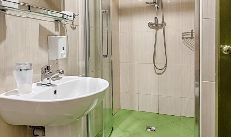 Санузел: с душевой кабиной, тапочки, туалетные принадлежности, фен, халат