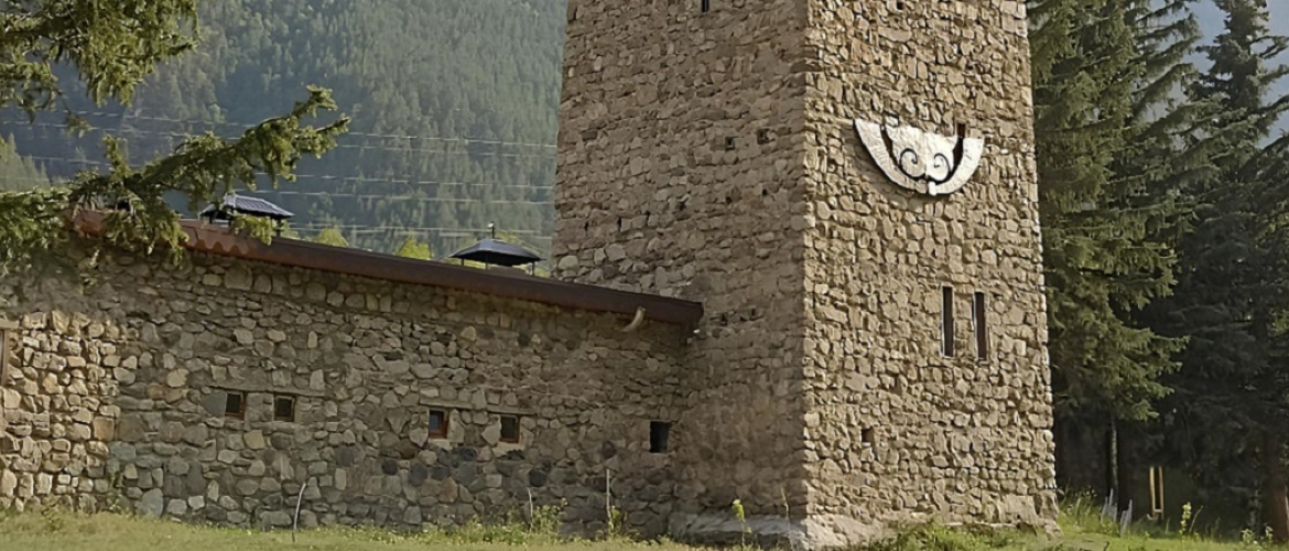 Здание гостиницы представляет собой одноэтажный корпус, оформленный в стиле средневековой кавказской крепости, который создает атмосферу уюта и безопасности. Внутренний двор отеля закрыт, что позволяет гостям наслаждаться спокойствием и уединением. Здесь гости могут остановиться в стандартных однокомнатных номерах, все из которых оборудованы современным душем и комфортной мебелью, что создает все условия для расслабляющего отдыха.