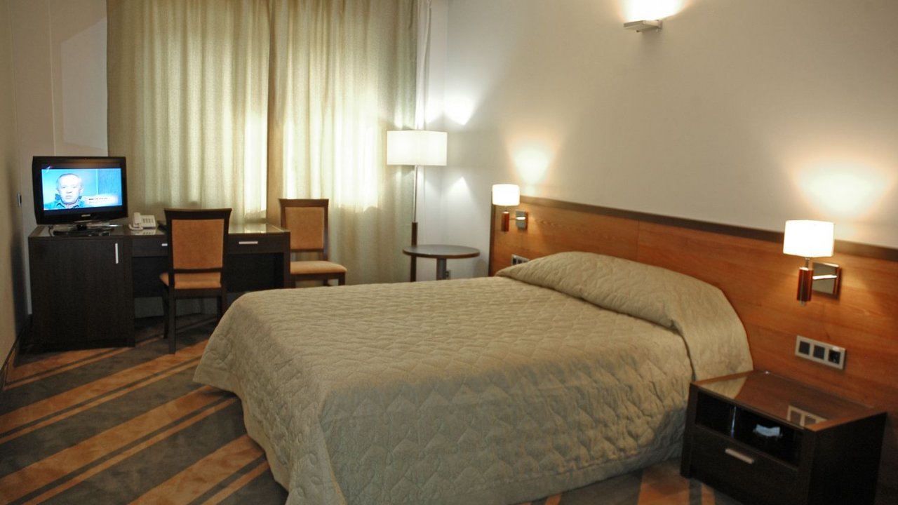 В номере: двуспальная кровать размера 1,8 м на 2 м, телевизор с плоским экраном, телефон, сейф, мини-бар, письменный стол, два стула, настольная лампа, торшер, бесплатный wi-fi, кондиционер