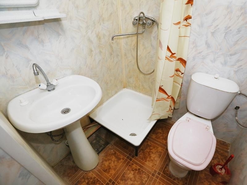 Санузел: с душем, раковиной, унитазом и полотенцесушителем